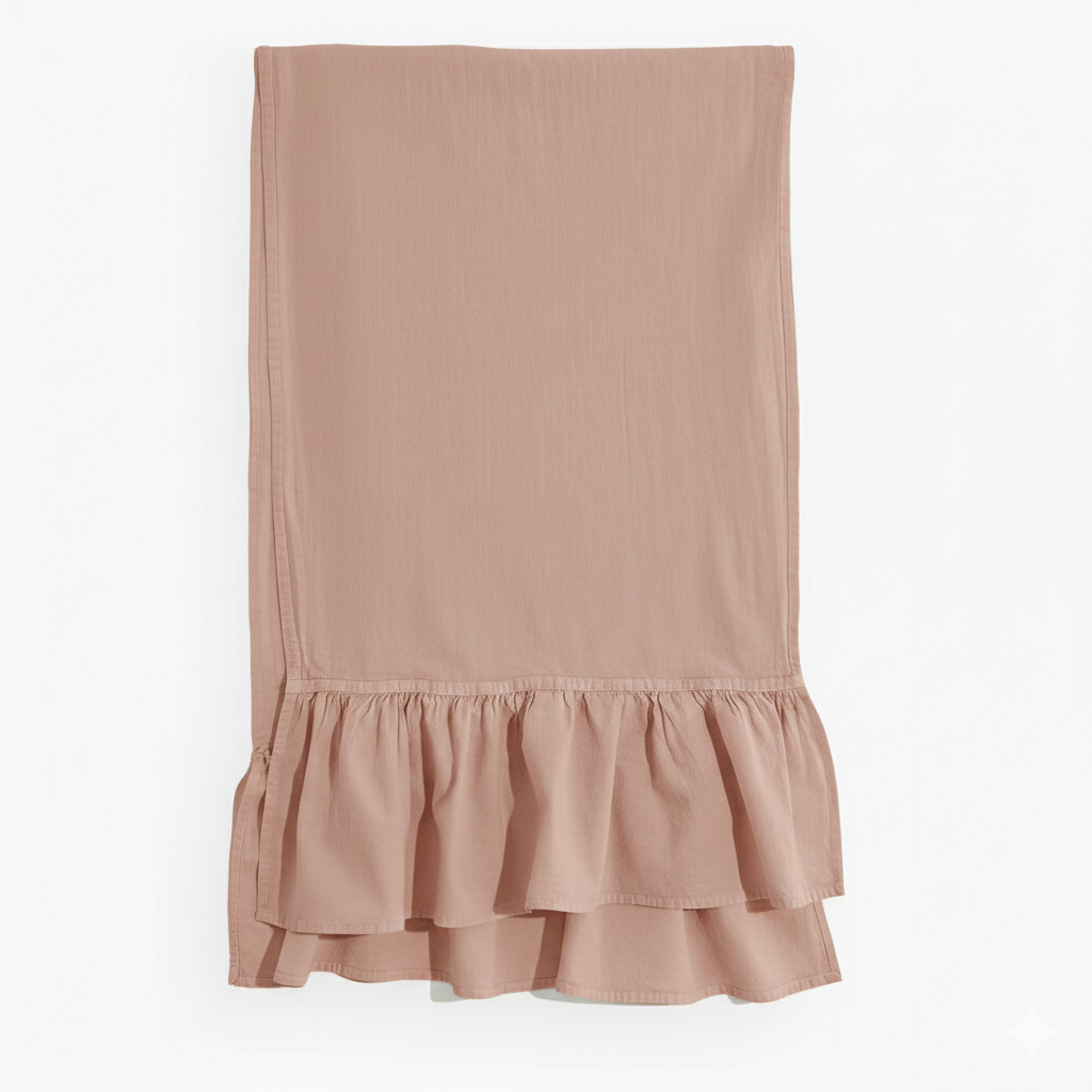 Nowoczesny bieżnik z dekoracyjną falbanką o uniwersalnym stylu inspirowanym skandynawskim designem. Wykonany w 100% z bawełny, miękki w dotyku, trwały i naturalny – idealny do codziennych aranżacji oraz wyjątkowych okazji.