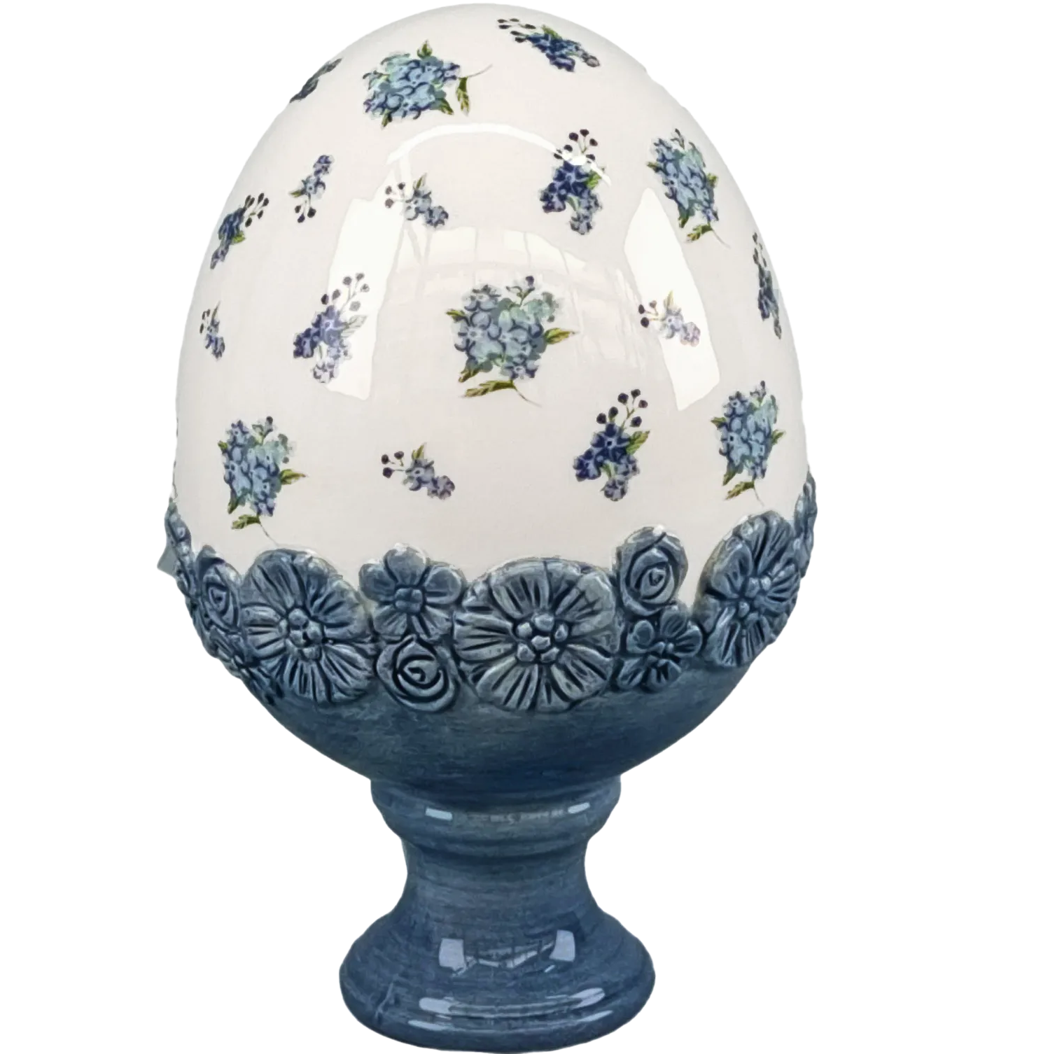 Ozdoba z niebieskimi kwiatami to dekoracyjne jajko wykonane z ceramiki w kolorze niebiesko-białym. Wymiary 11,7 x 11,7 x 19 cm sprawiają, że doskonale prezentuje się na stole lub komodzie dodając wnętrzu świeżości i elegancji.