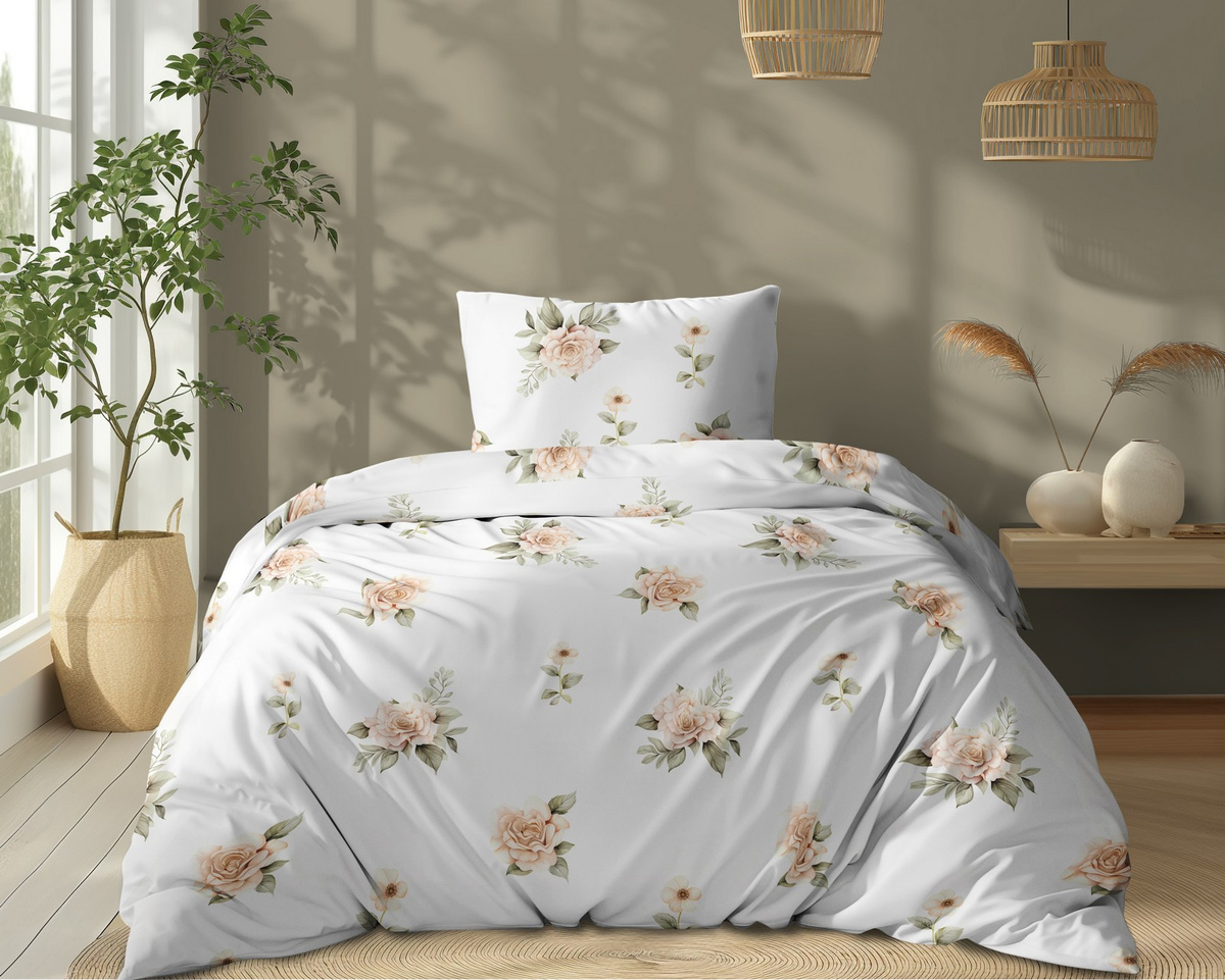 Komplet pościeli bawełnianej Kwiaty na bieli 5342A MM