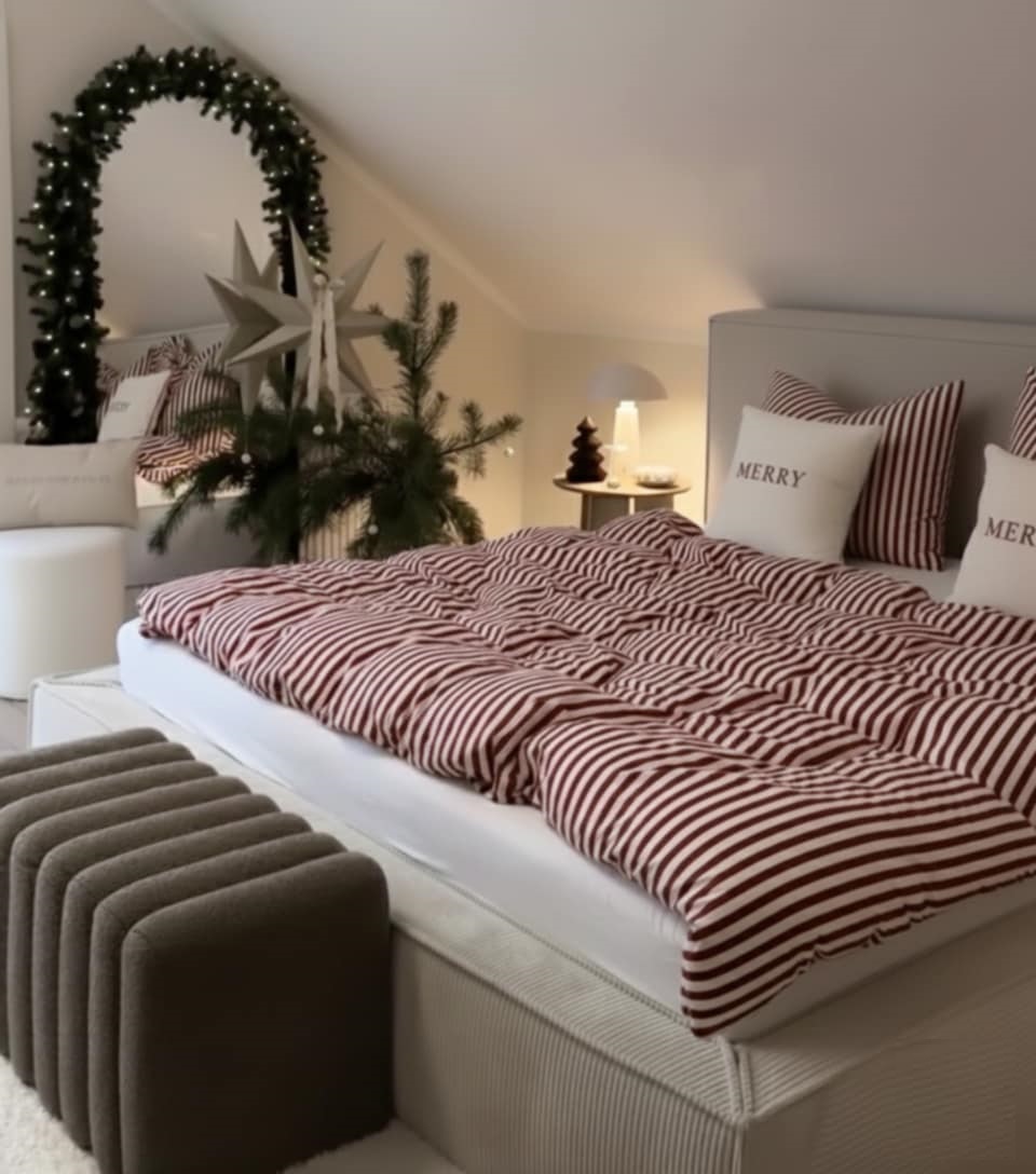 Pościel w czerwone paseczki – świąteczny akcent w pokoju maluszka 🎄