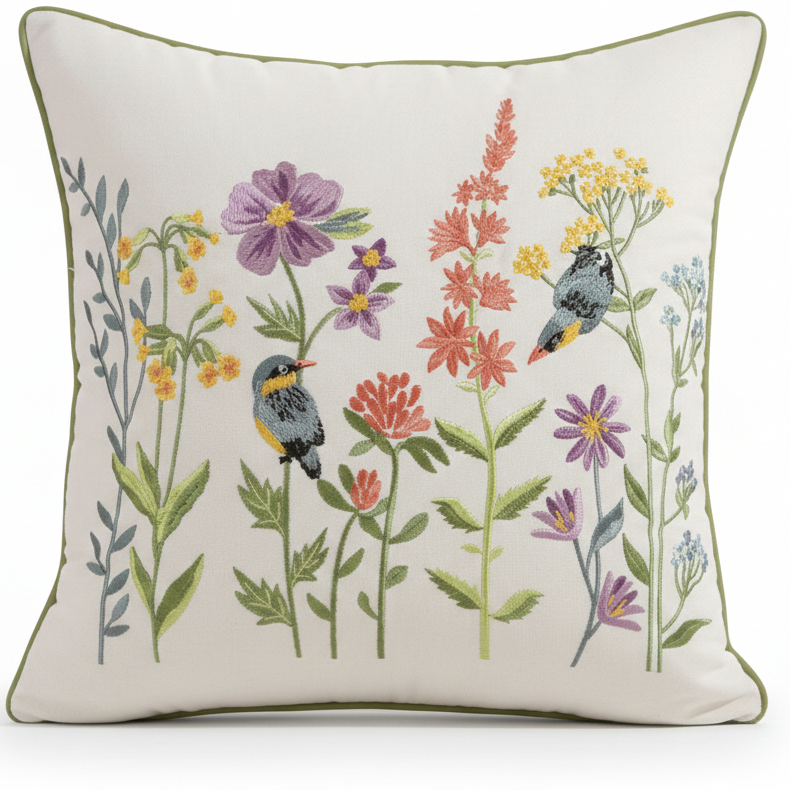 Poszewka na poduszkę Haftowane Kwiaty i Ptaszki 45×45 cm ns