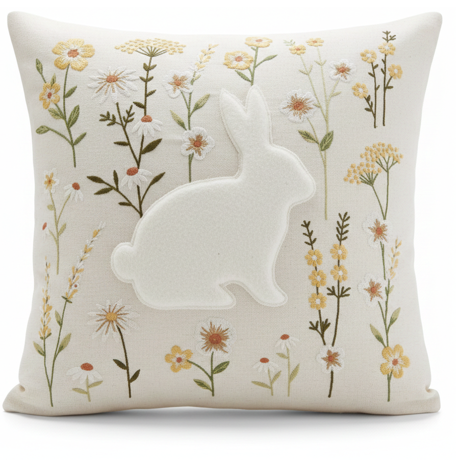 Poszewka na poduszkę Puchaty Zajączek i haftowane kwiaty 45×45 cm ns