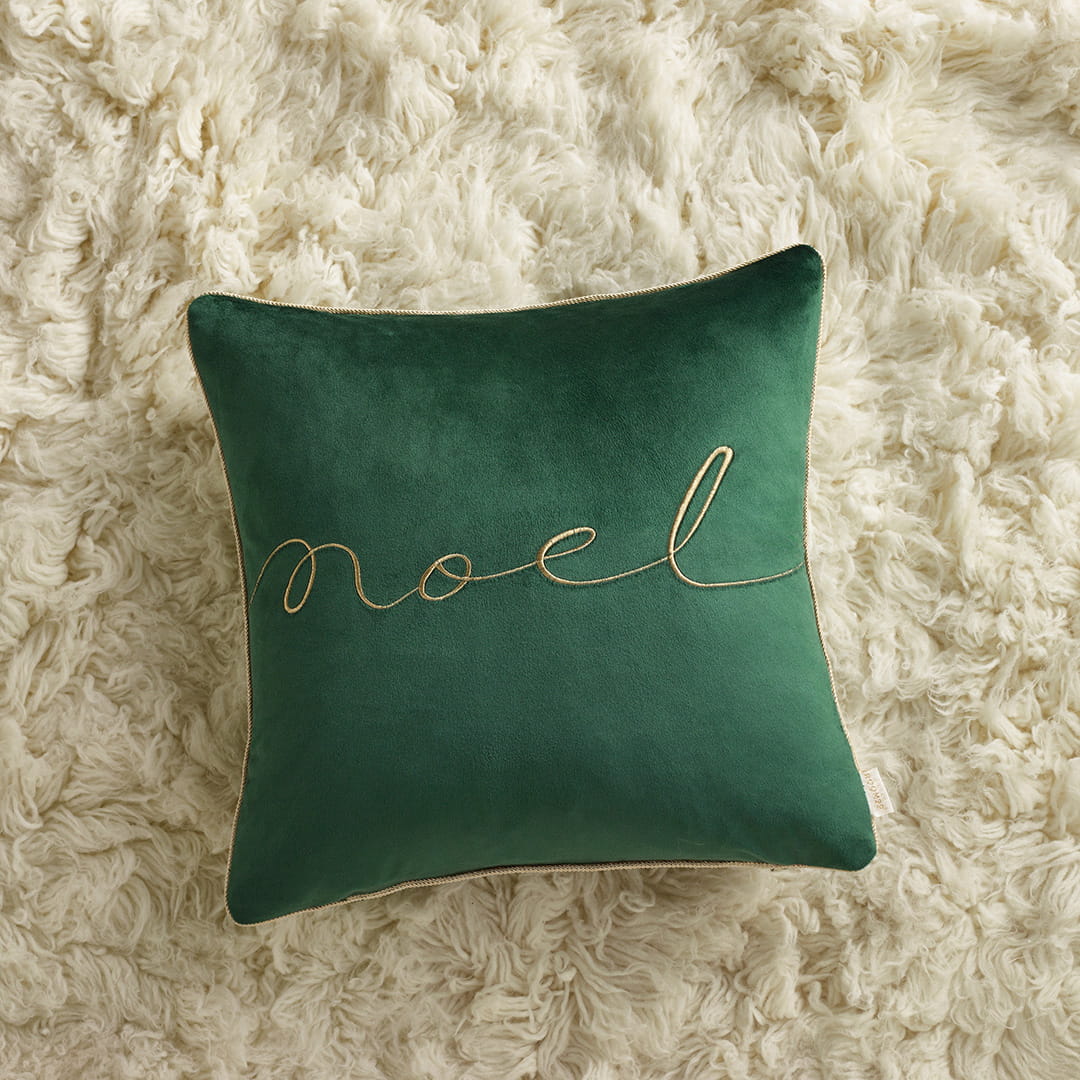 Poszewka świąteczna butelkowa zieleń Noel ze złotą lamówką 45×45 cm R
