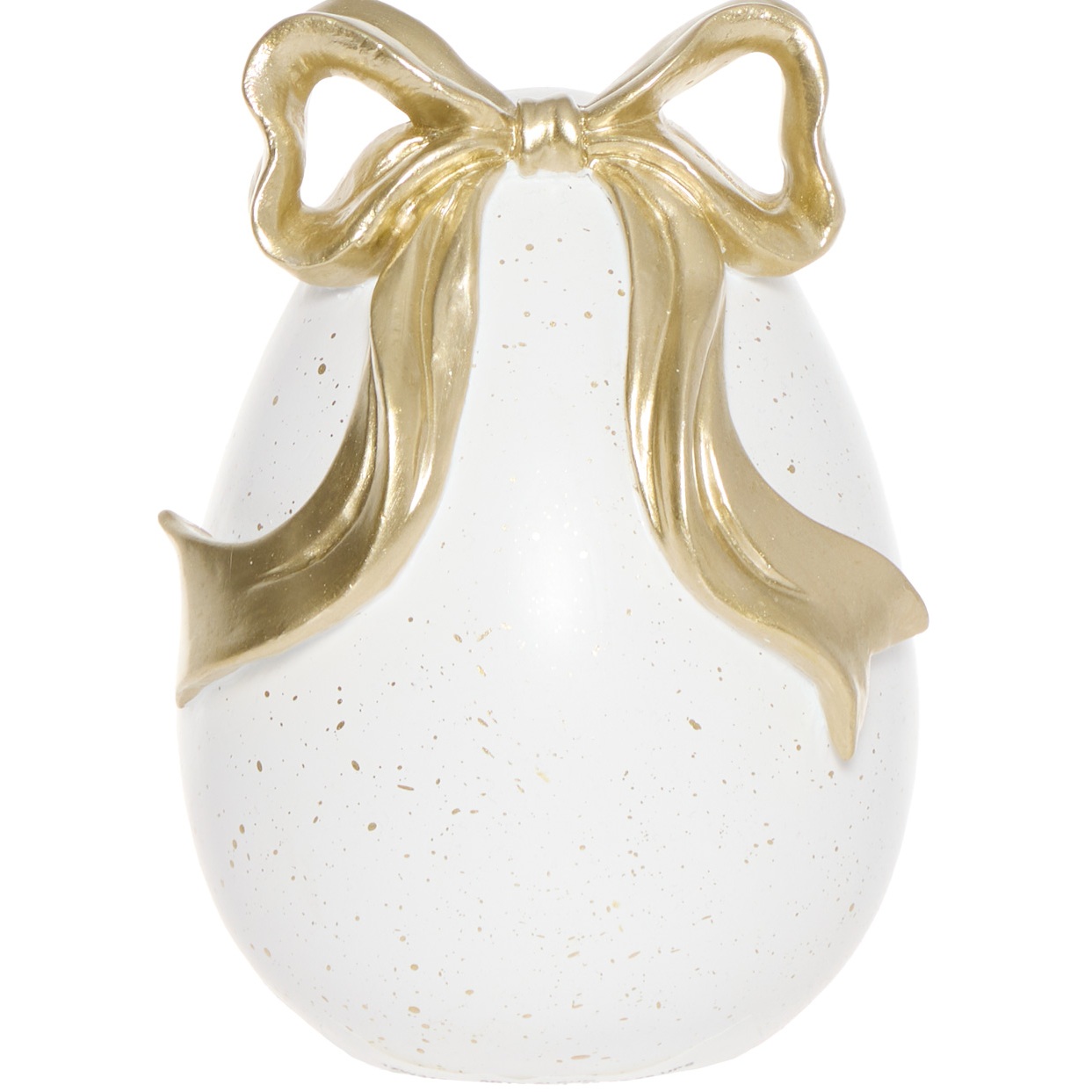 Ozdoba wielkanocna Złota Kokarda to elegancka dekoracja, która pięknie podkreśli świąteczny, wiosenny klimat wnętrza. Duże jajko ze złotą kokardą stanowi stylowe połączenie tradycyjnego symbolu Wielkanocy z subtelnym, luksusowym akcentem.