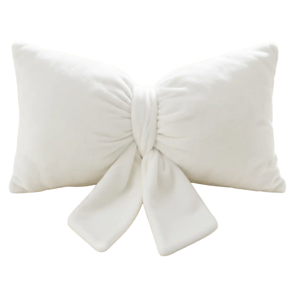 Welurowa poduszka świąteczna w kształcie kokardy 35×20 cm – Biała 🎀