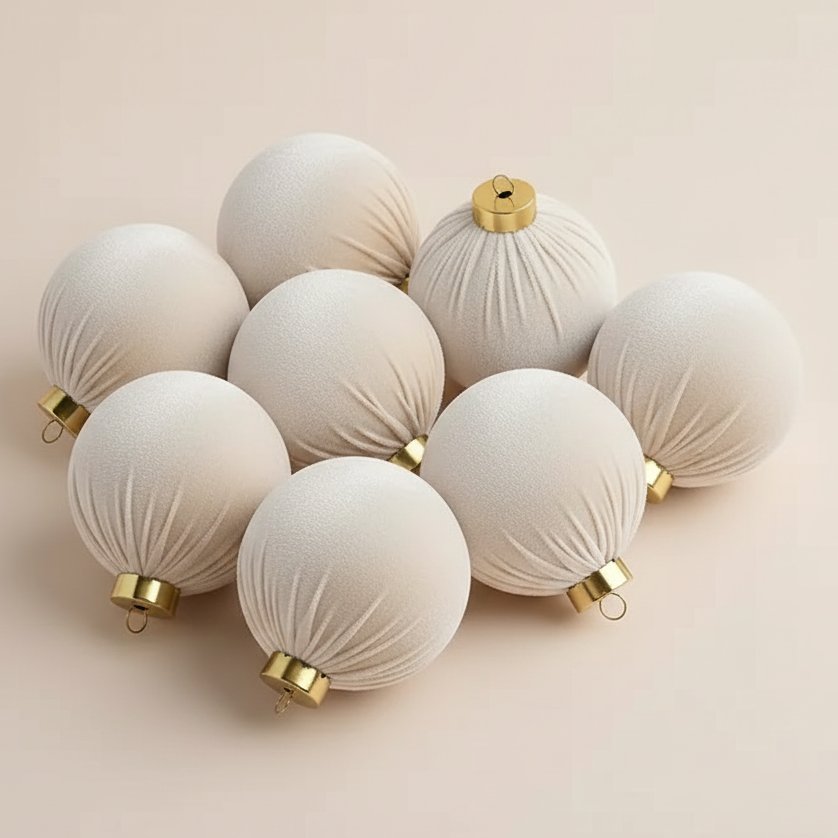 ⭐ Zestaw 9 Luksusowych Bombek Welurowych 8 cm – Szampańska Elegancja